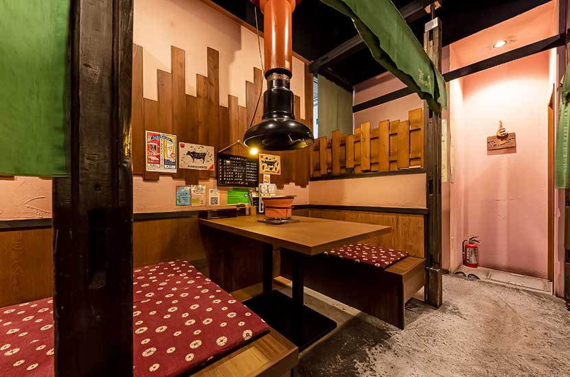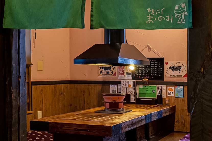 お肉は炭火の七輪で焼いていただくスタイル。牛の甘み・旨みと炭火の香り、アンサンブルが秀逸です。各テーブルには、吸煙フードが設置されていますので、煙もあまり気になりません。